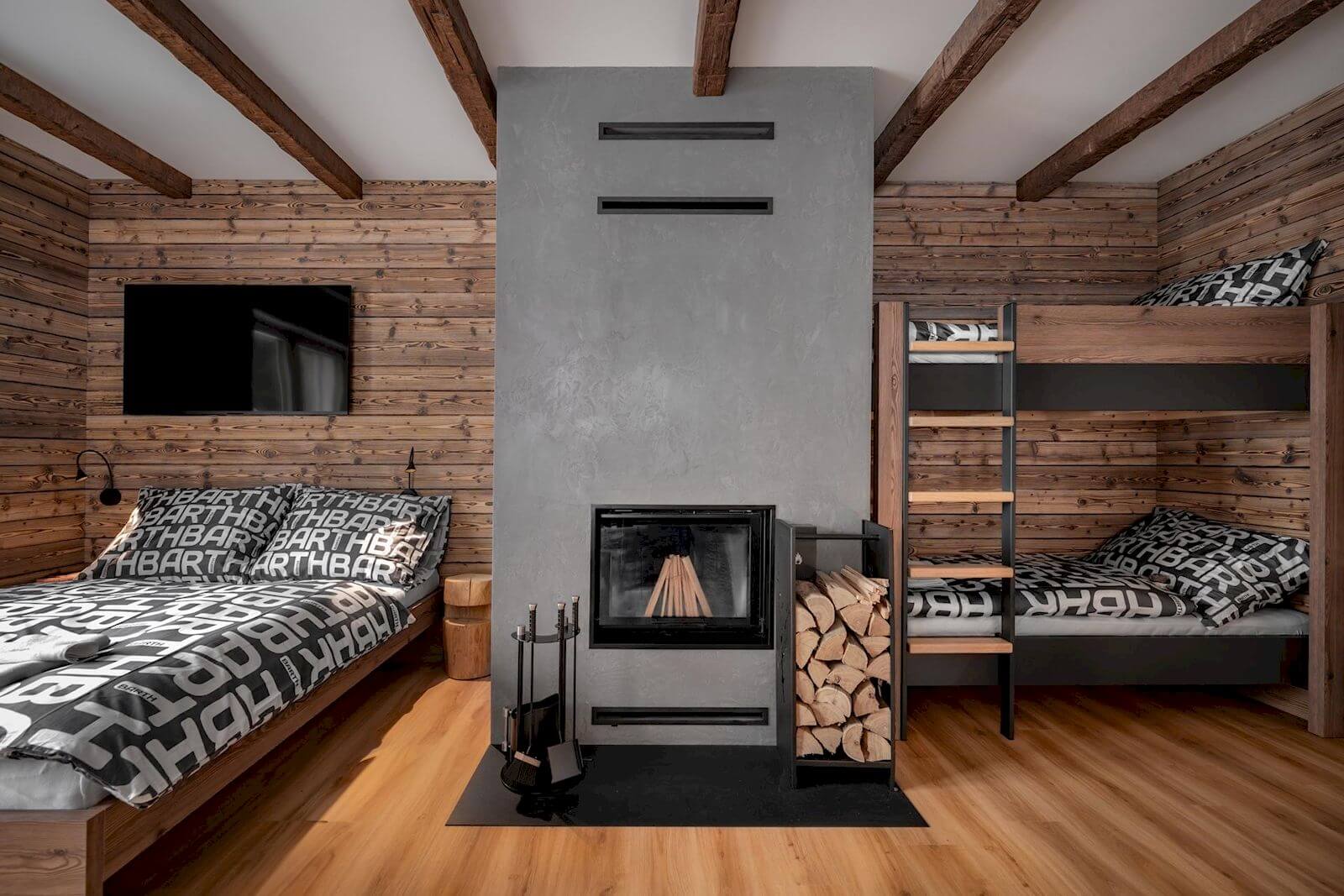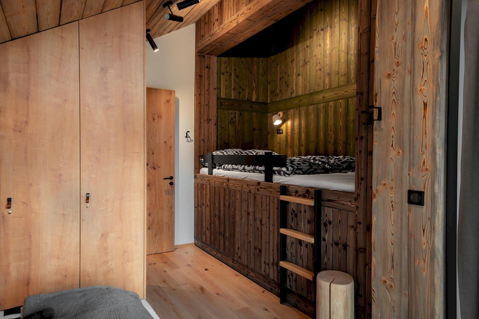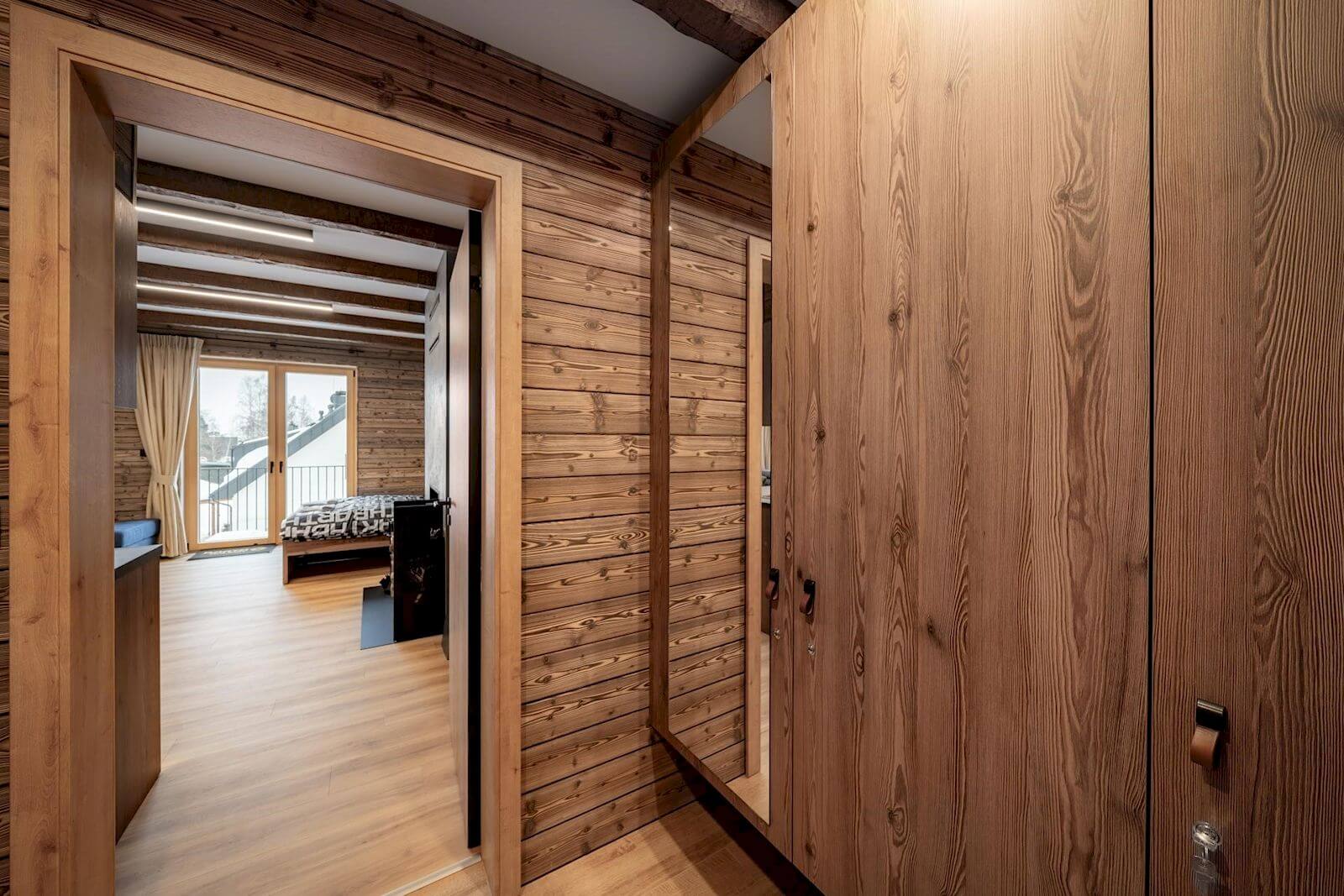 Kompletně jsme vybavili pět horských apartmánů v Říčkách v Orlických horách – od kuchyní až po vestavěný nábytek, s výjimkou koupelen. Původně cihlové stavby dostaly díky dřevěným palubkám a masivním obkladům na míru útulný vzhled horské chaty.